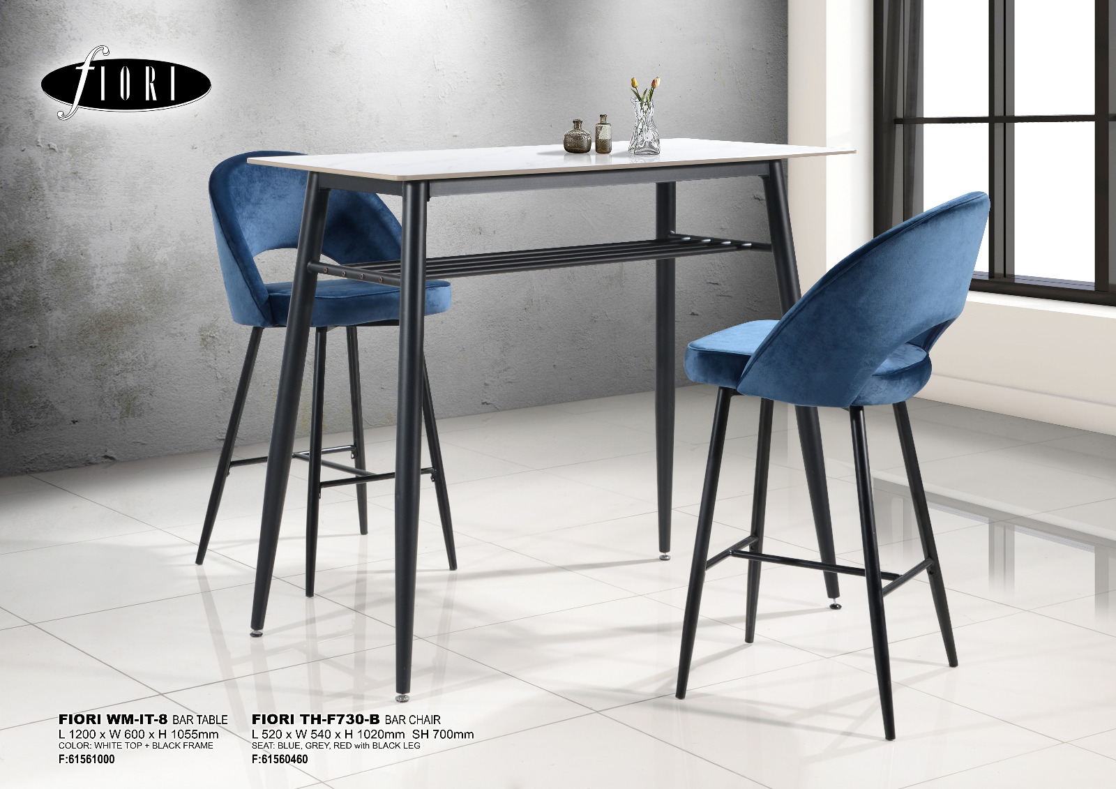 FIORI WM-IT-8 BAR TABLE SIZE: L1200 X W600 X H1055MM COLOR: WHITE TOP + BLACK FRAME